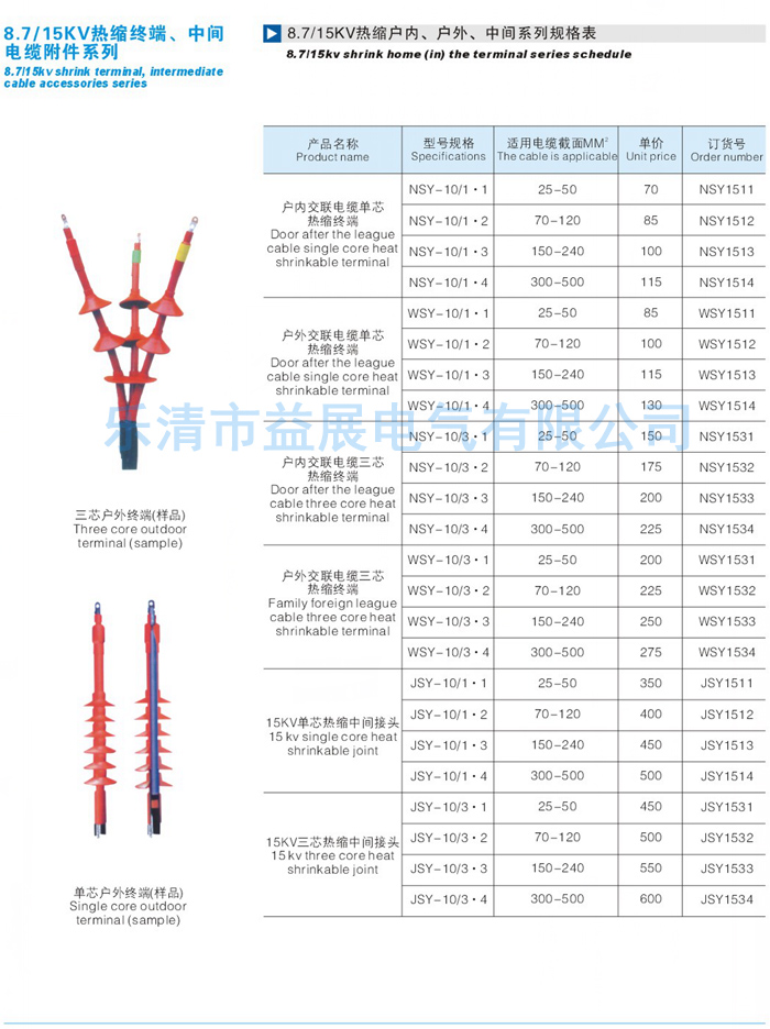 8.7-15KV單芯戶內(nèi)電纜終附件價(jià)格只提供參考,實(shí)際價(jià)格請咨詢廠家熱線:0577-61732562