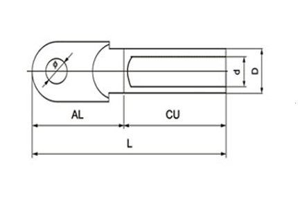用途 :DTL系列銅鋁接線端子適用于配電裝置中各種圓型,半圓扇型鋁線,電力電纜與電氣設(shè)備銅端的過渡連接。使用鋁材為L3,銅材為T2。產(chǎn)品采用磨擦焊工藝制造,具有焊縫強(qiáng)度高,通電性能好,抗電化腐蝕,使用壽命長等等特點(diǎn)。