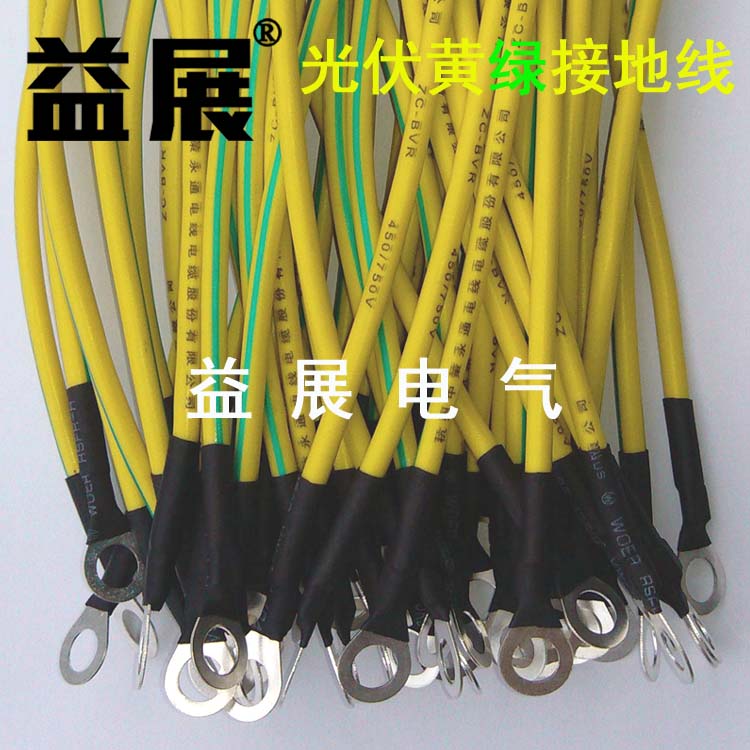 益展牌光伏配件接地線,光伏橋架跨接線,設備接地線,益展牌-黃綠接地線 本廠接地線全部為國標線,采用BVR電纜線規格2.5平方 4平方 6平方 10平方 16平方等 可訂做各種規格 。